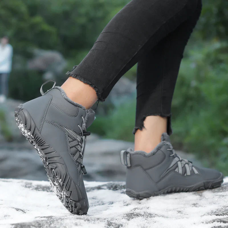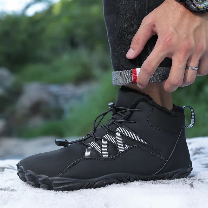 Den speciellt utformade barfotainredningen med en bred tåbox ger inte bara fötterna det utrymme de behöver, utan anpassar sig perfekt till fotens form och eliminerar ömmande fötter. Nu blir vinterpromenaderna en ren fröjd!